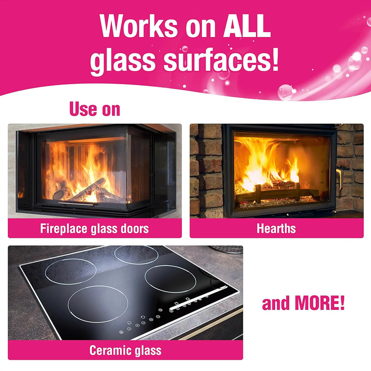 Includes (1) 16 oz. Fireplace Glass & Screen cleaner spray, a pink scrubber sponge, and a microfiber towel for a thorough clean, rendering your fireplace and other glass surfaces as good as new.