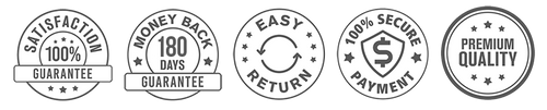 100% Satisfaction Guarantee, 180 Days Money Back Guarantee, Easy Returns, 100% Secure Payment, Premium Quality